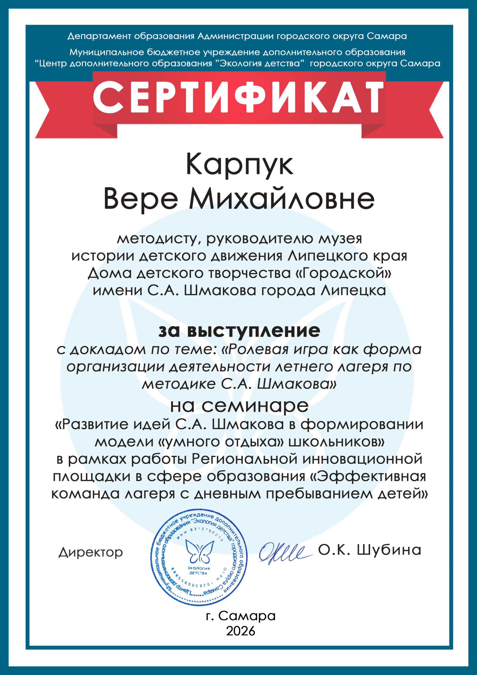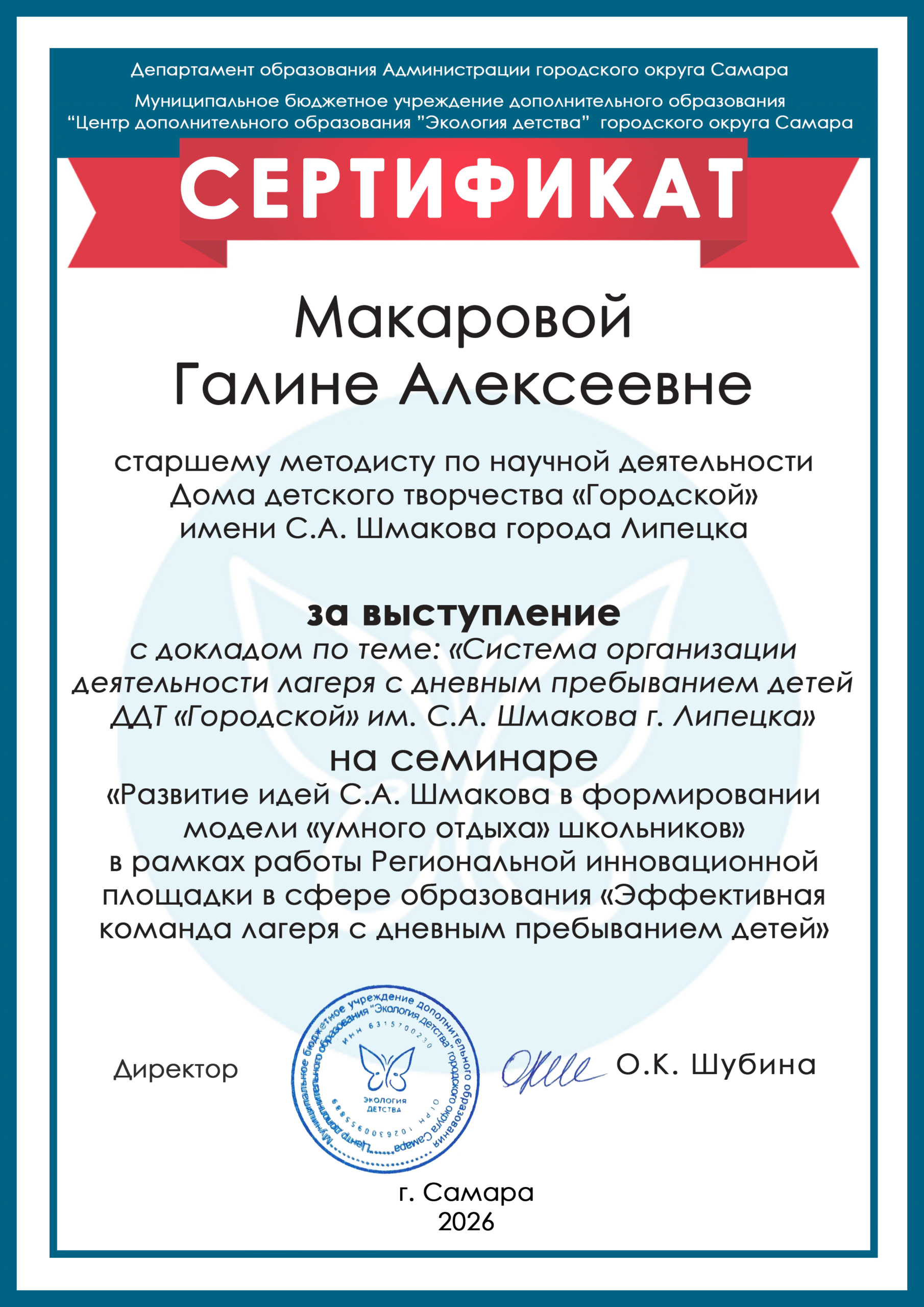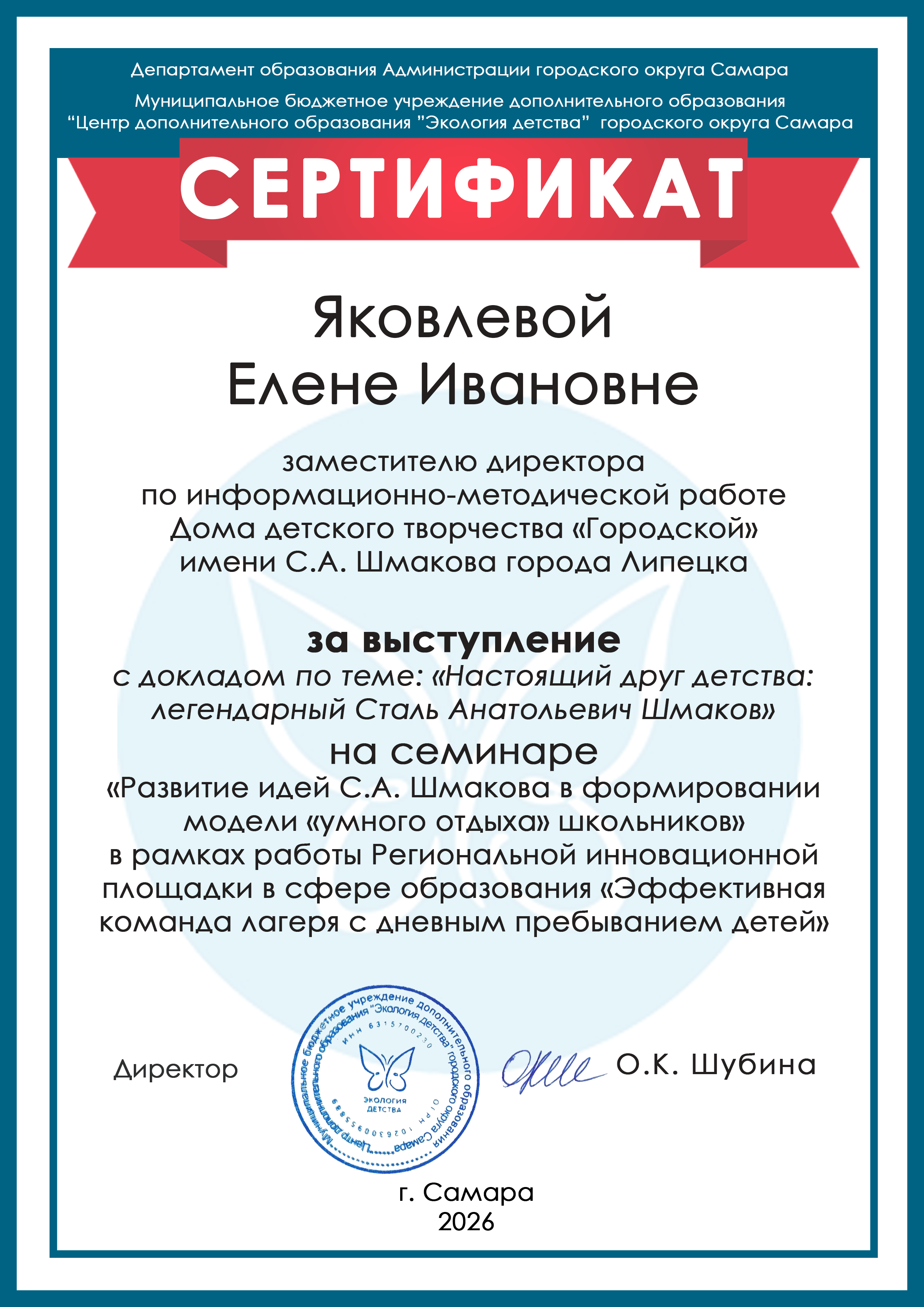 13.02.26 прошел вебинар «Развитие идей С.А. Шмакова в формировании модели «Умного отдыха» школьников» (письмо-вызов) (презентация) (благодарственные письма Карпук В.М. , Яковлева Е.И., Полукарова Д.С. , Макарова Г.А.)